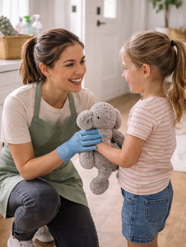 Instead of pushing them away, we meet that curiosity with kindness. If a child shows interest, we encourage safe, age-appropriate involvement. Turning everyday cleaning into a positive experience helps build responsibility, confidence, and life skills.